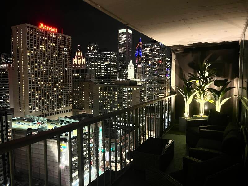 Step outside to the massive 25-foot long balcony with fully upgraded flooring, a 5-piece patio furniture set, faux grass, and nearly natural plants, creating the best seat to enjoy the stunning skyline from 25 stories above - no green thumb required!
